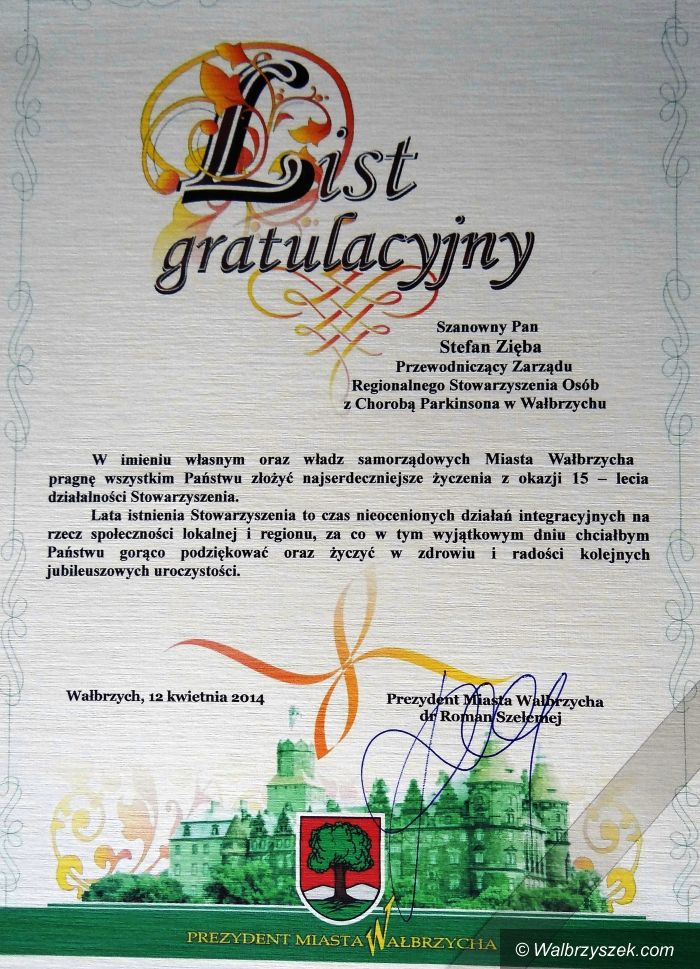 15–lecie działalności Regionalnego Stowarzyszenia Osób z Chorobą Parkinsona w Wałbrzychu