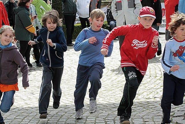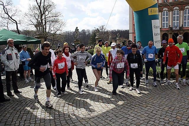 Biegali po zamkowych schodach