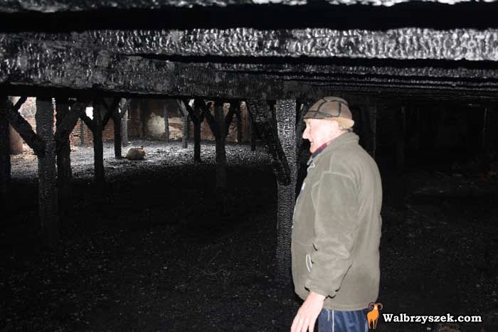 Józef Chmura wskazuje miejsce, w którym wybuchł pożar