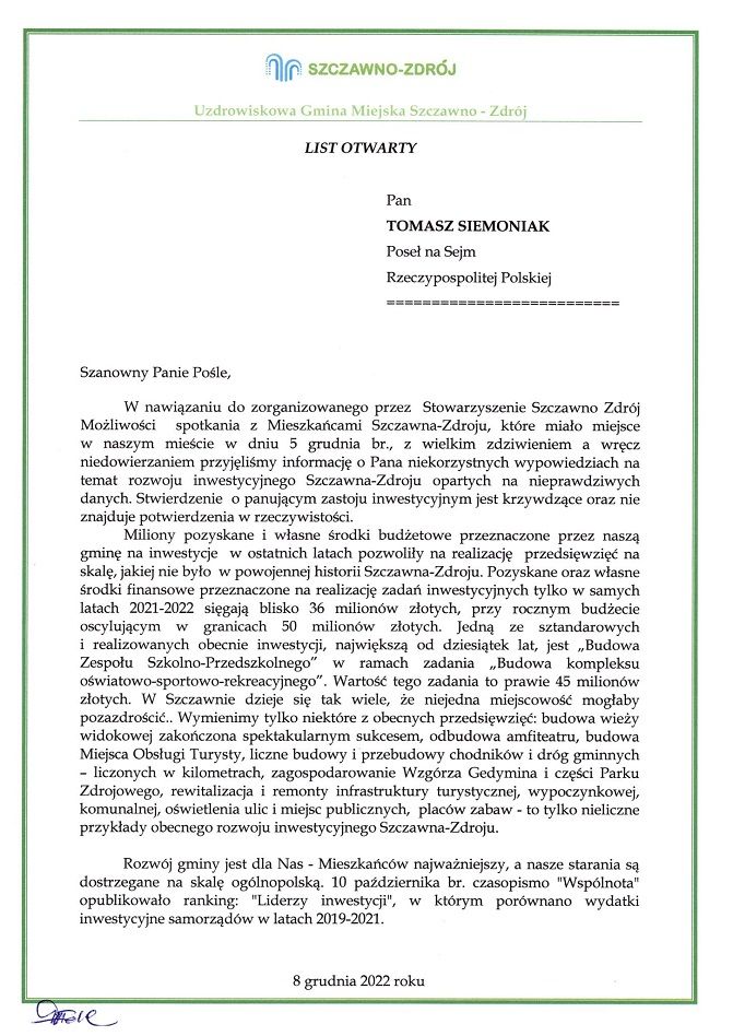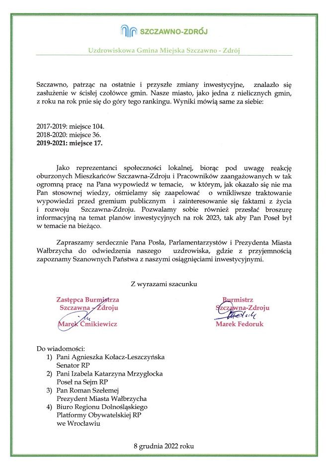 Burmistrz oburzony słowami posła
