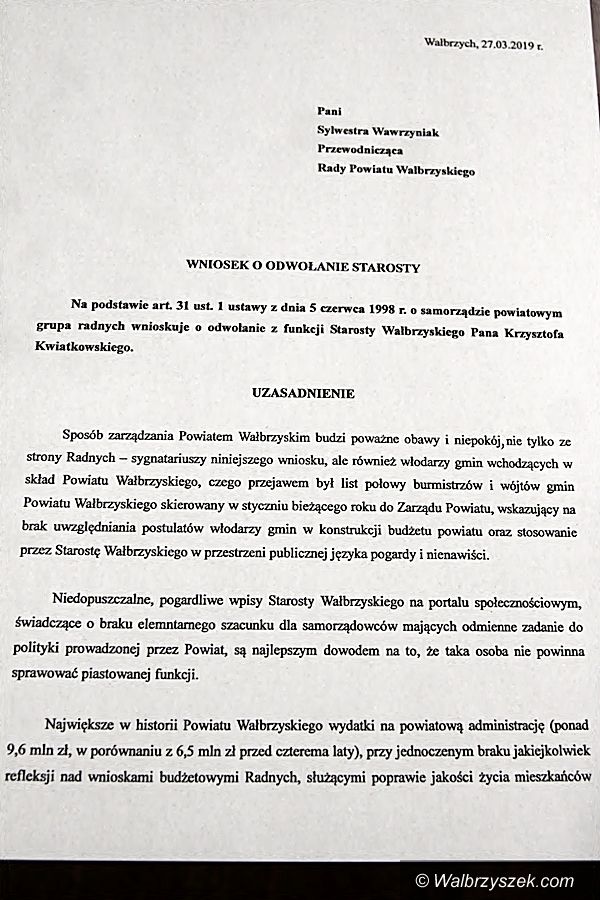 Chcą odwołania Starosty