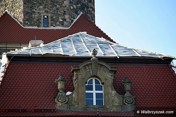 Dach Zamku Książ remontowany
