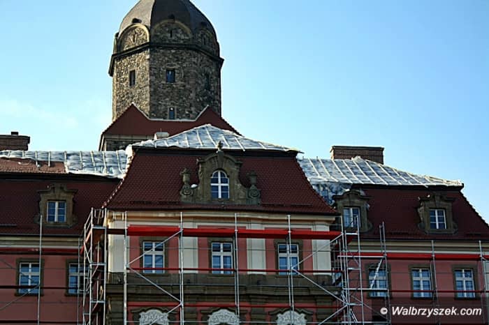 Dach Zamku Książ remontowany