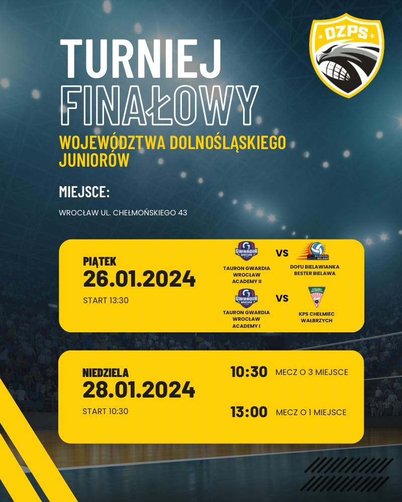 W najbliższy weekend czekają nas cztery mecze, które zadecydują o podziale medali w sezonie 2023/24. Z dobrych informacji możemy zakomunikować, że wszystkie uczestniczące kluby tj. Tauron Gwardia Wrocław Academy (gospodarz), DOFU Bielawianka Bester Bielawa oraz KPS Chełmiec Wałbrzych uzyskały awans do fazy centralnej Mistrzostw Polski Juniorów. Harmonogram gier na poniższej grafice.