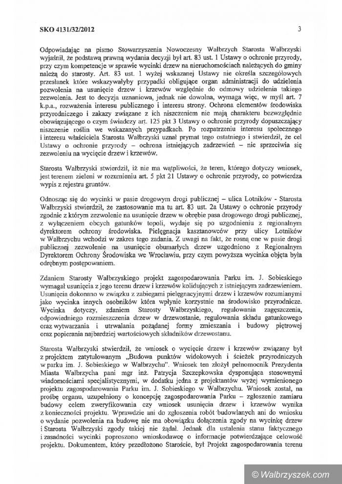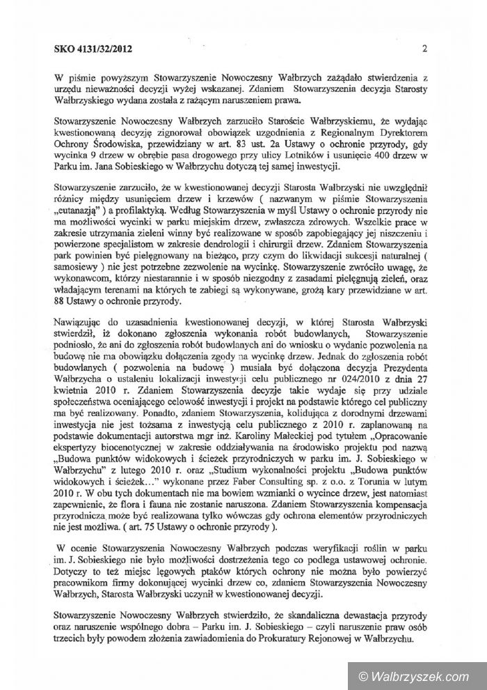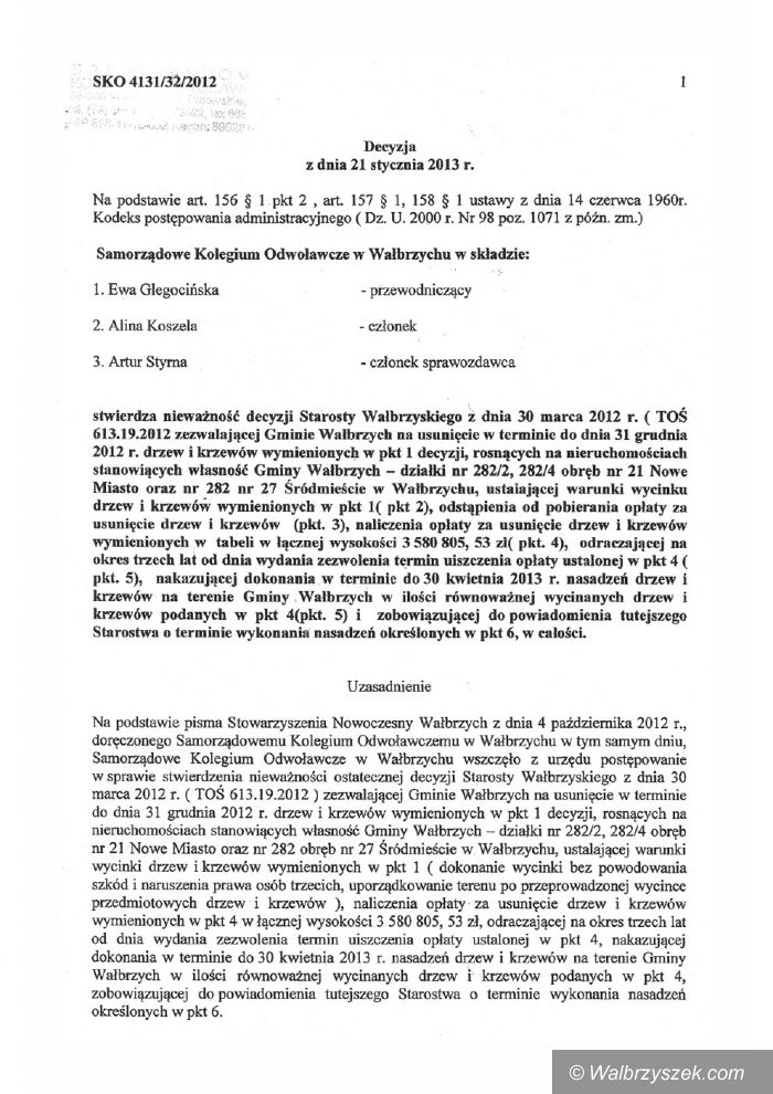 Decyzja Starosty Wałbrzyskiego unieważniona przez SKO