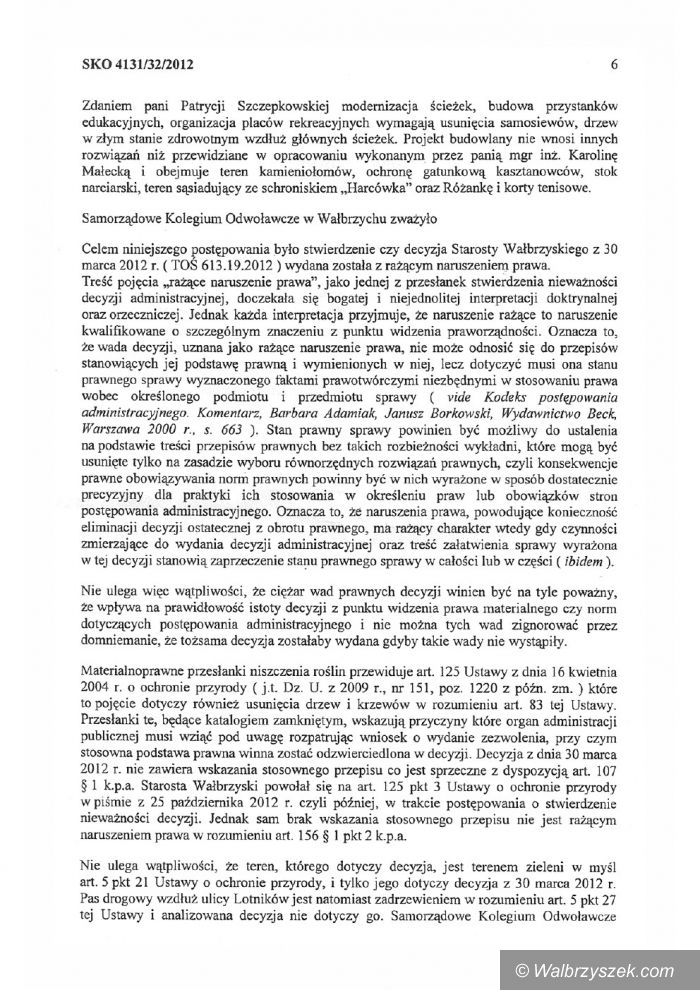 Decyzja Starosty Wałbrzyskiego unieważniona przez SKO