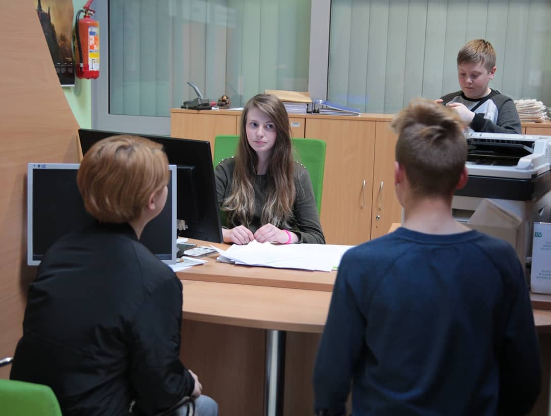 Ekipa filmowa w sali obsługi ZUS