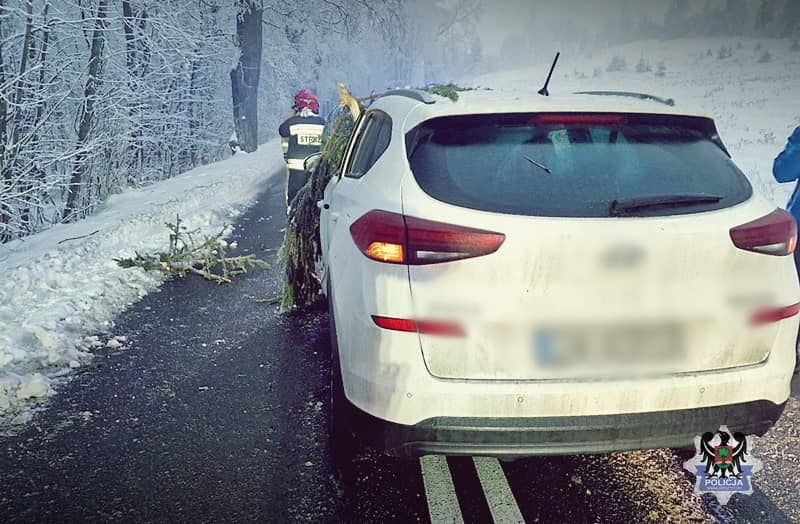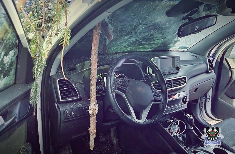 Gałąź wbiła się w auto