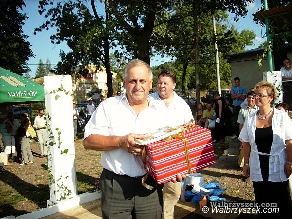 Wójt Walimia Adam Hausman wręcza zwycięzcy czeka na 2000 zł