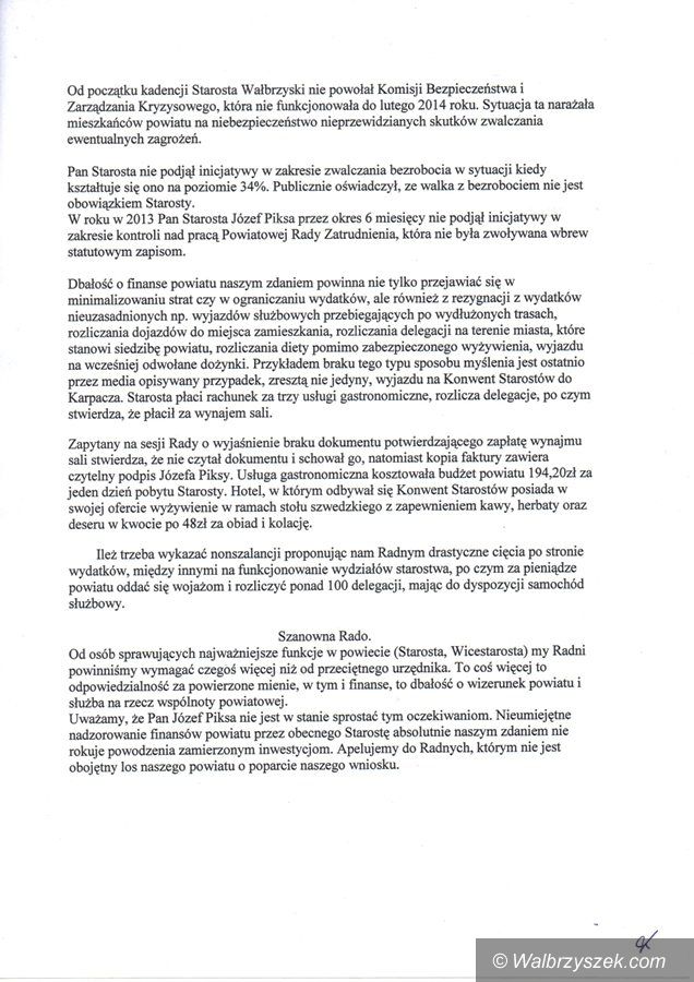 Grupa radnych złożyła wniosek o odwołanie starosty Józefa Piksy