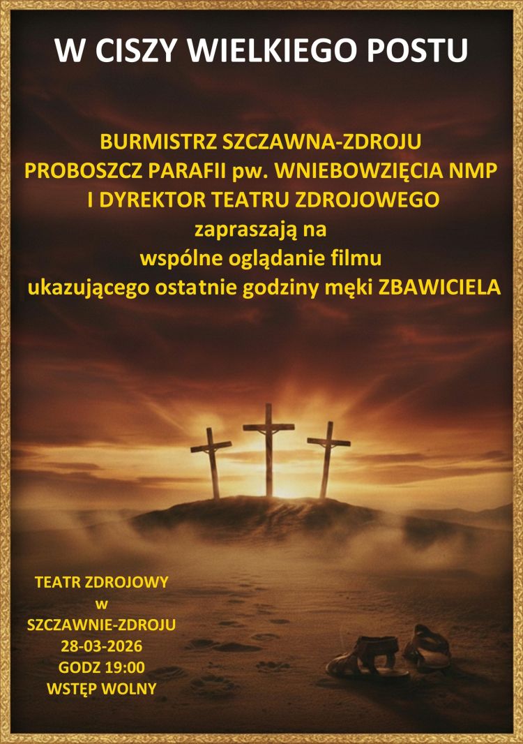 Burmistrz Szczawna-Zdroju, Proboszcz Parafii pod wezwaniem Wniebowzięcia NMP oraz Dyrektor Teatru Zdrojowego zapraszają na bezpłatny seans filmowy.
