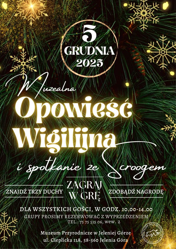 MUZEALNA OPOWIEŚĆ WIGILIJNA I SPOTKANIE ZE SCROOGEM - "mikołajki" w Muzeum Przyrodniczym
