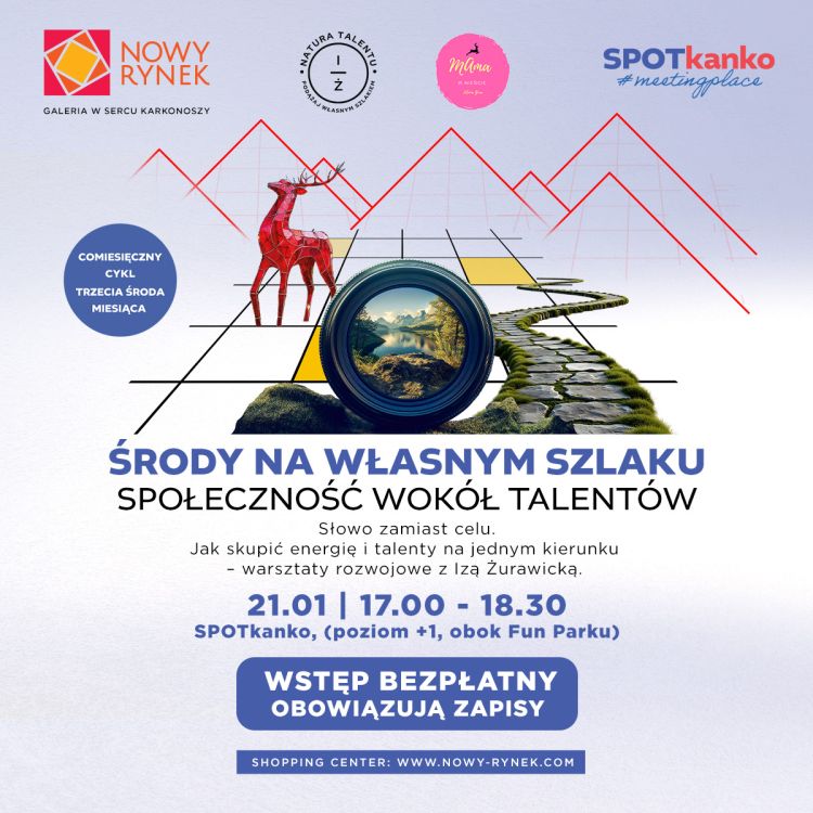 Udział w wydarzeniu jest bezpłatny, obowiązują zapisy dostępne na stronie galerii https://nowy-rynek.com/21-01-srody-na-wlasnym-szlaku-spolecznosc-wokol-talentow-slowo-zamiast-celu/