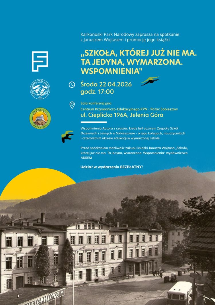 Karkonoski Park Narodowy zaprasza na spotkanie z Januszem Wojtasem i promocję jego książki „Szkoła, której już nie ma. Ta jedyna, wymarzona. Wspomnienia”