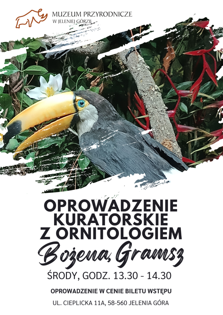 Oprowadzenie kuratorskie z ornitologiem, Bożeną Gramsz. Cykliczne, piątkowe spotkania z opiekunem wystawy, który najlepiej opowiada o wystawie ptaków, historii powstania kolekcji, a przede wszystkim przedstawi zwiedzającym najciekawsze okazy ze zbiorów muzealnych – nie lada gratka dla wielbicieli ptaków.