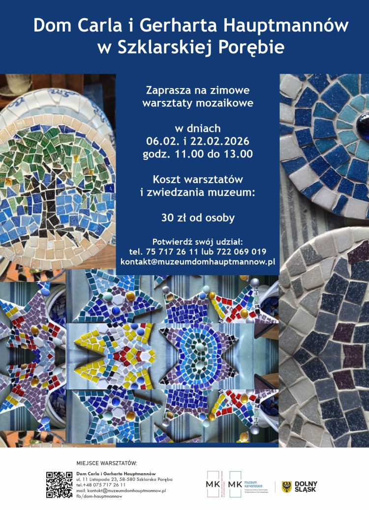 Zapraszamy dnia 6 lutego 2026r. w godz. 11.00 – 13.00 na zimowe warsztaty mozaikowe dla dzieci i dorosłych połączone z oprowadzaniem po ekspozycji muzealnej.