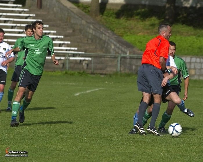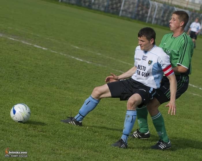 Piłkarze MKS–u (zielone stroje) wypadli w Jeleniej Górze słabo