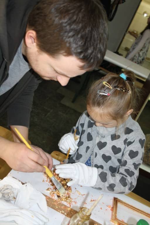 Lekcja pozłotnictwa w wałbrzyskim muzeum