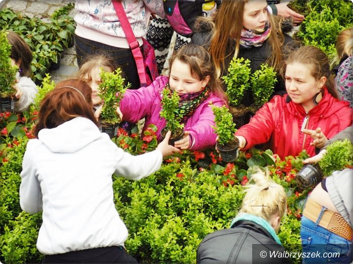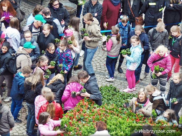 Mieszkańcy układali Herb Wałbrzycha z kwiatów