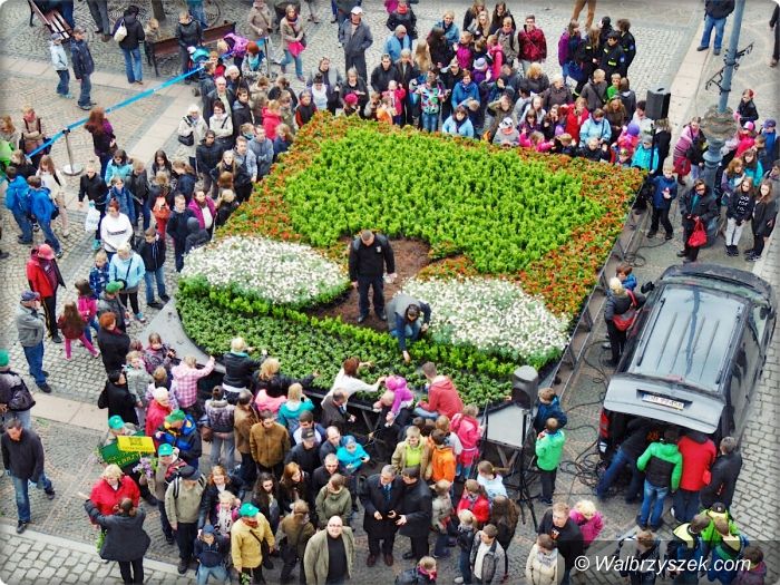 Mieszkańcy układali Herb Wałbrzycha z kwiatów