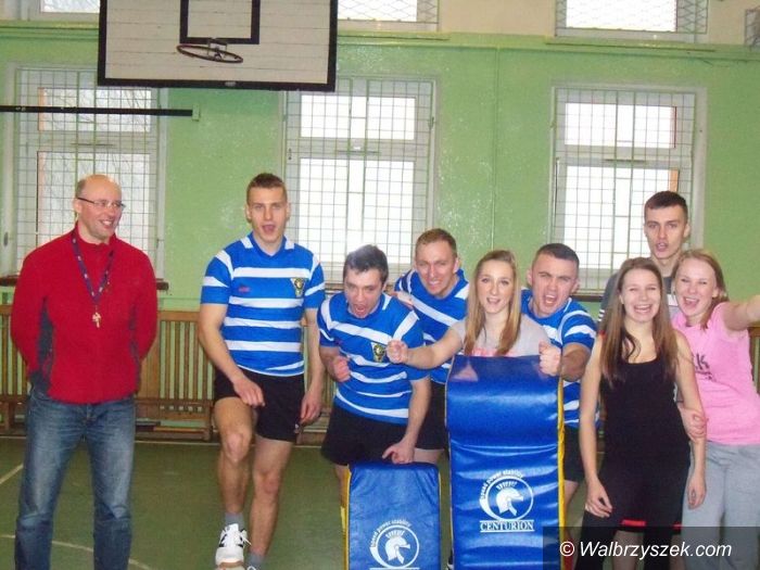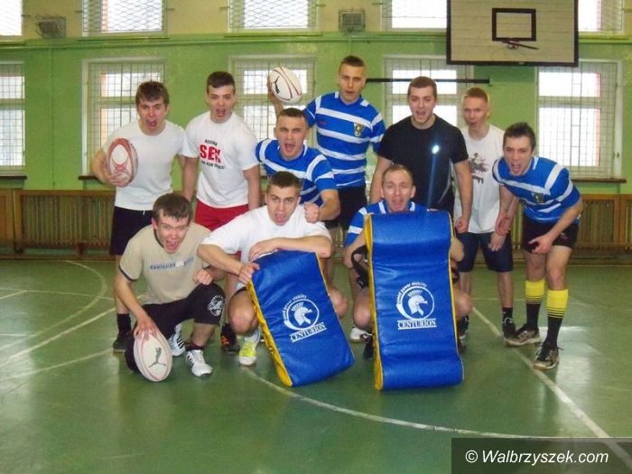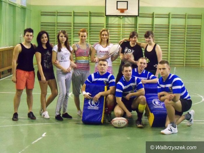 Młodzież uczy się gry w rugby