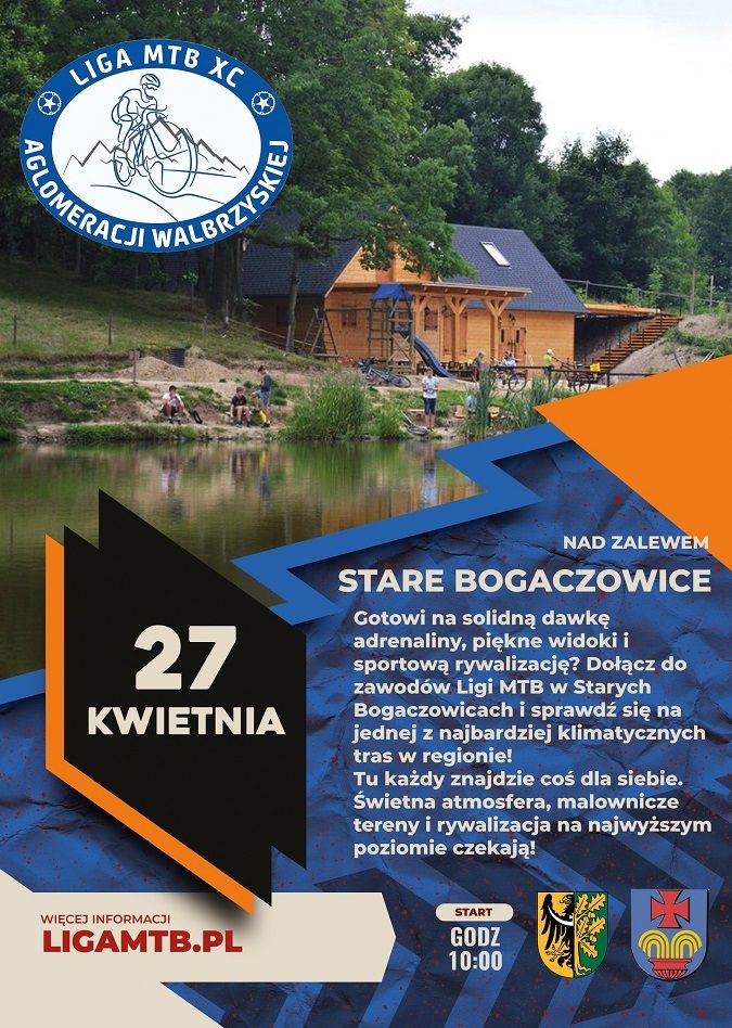 Biuro zawodów będzie czynne w dniu 27.04.2025 od godz. 8:30, w obiekcie socjalnym nad zalewem w Starych Bogaczowicach.