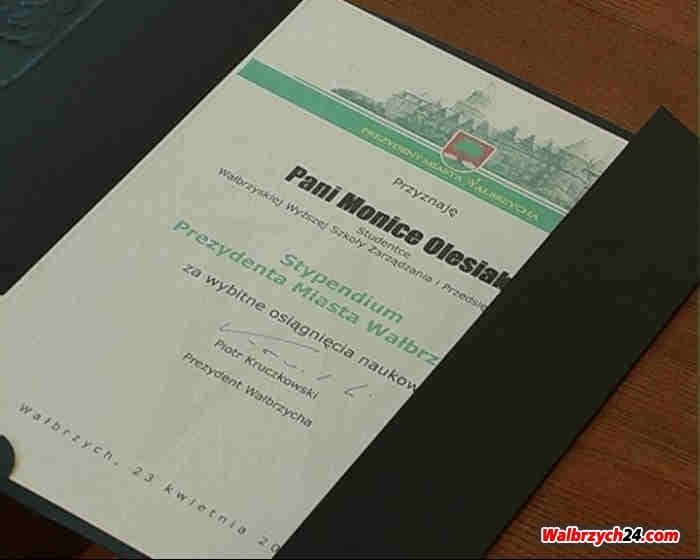 Prezydent Wałbrzycha Piotr Kruczkowski wręcza stypendia