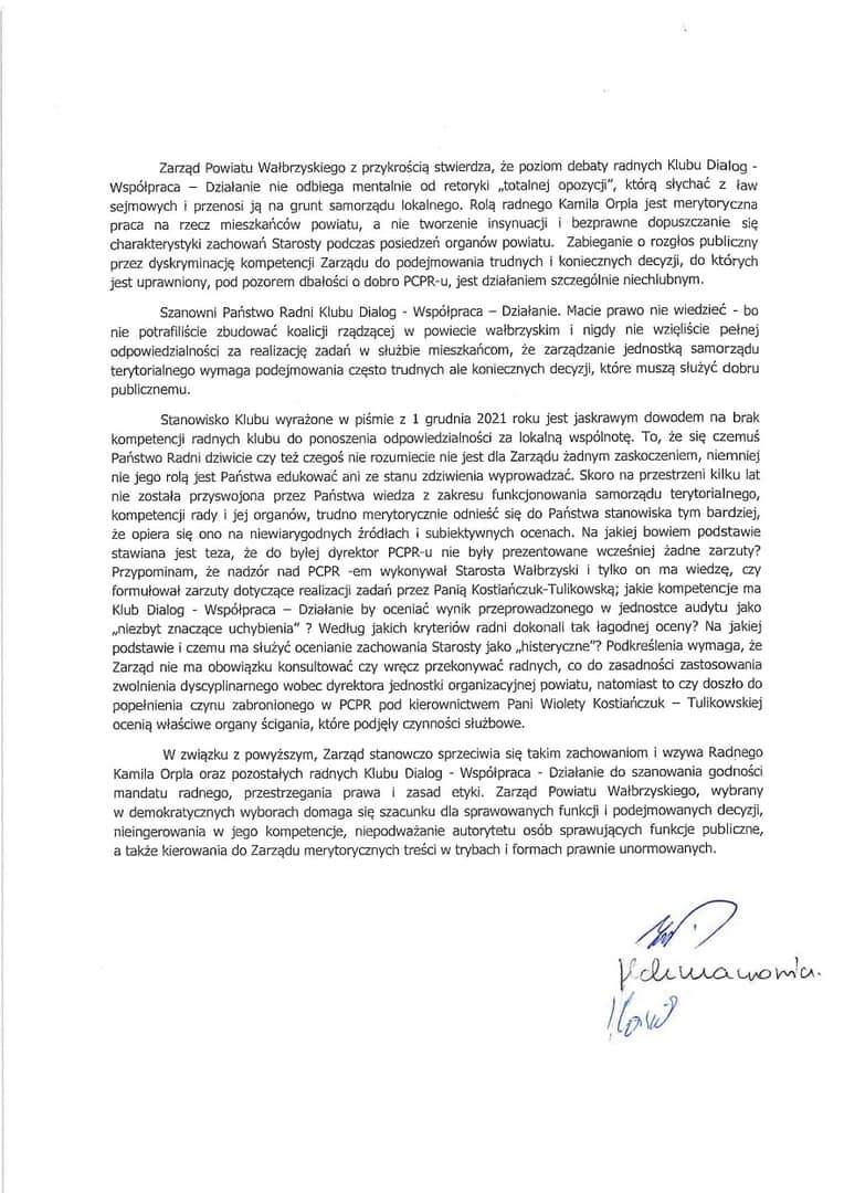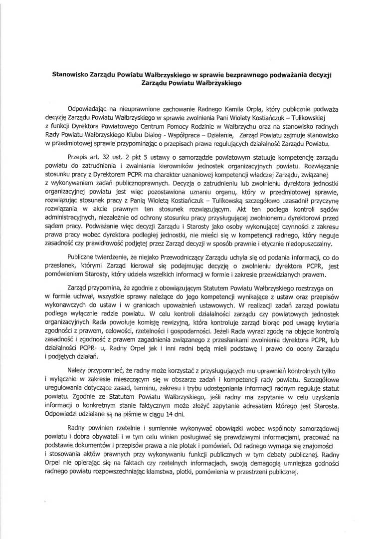 Oświadczenie Zarządu Powiatu