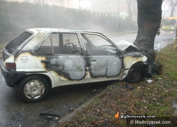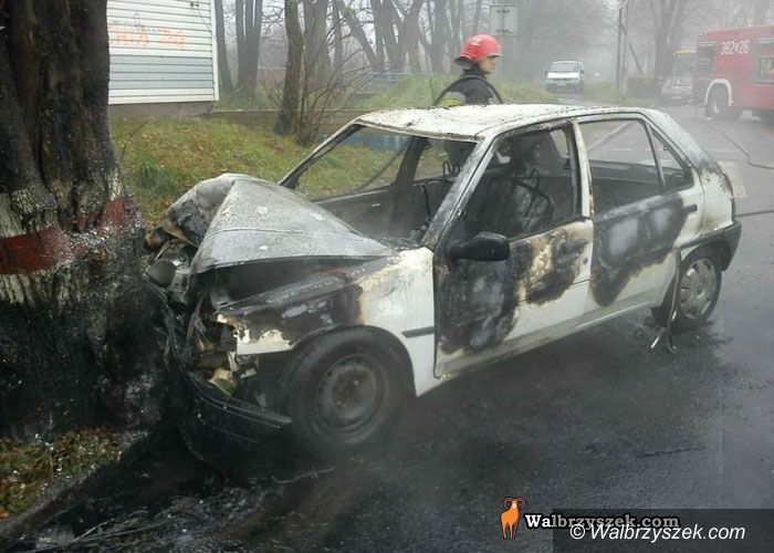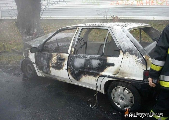 Płonący samochód w Szczawnie–Zdroju