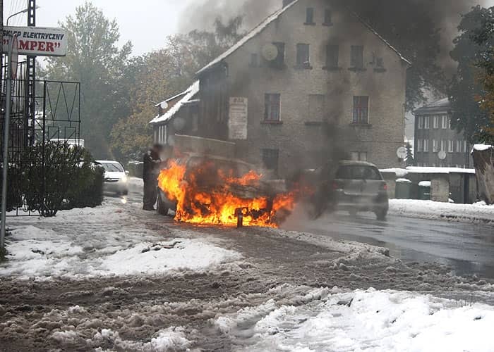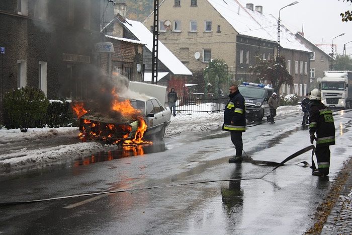 Płonął samochód w Głuszycy