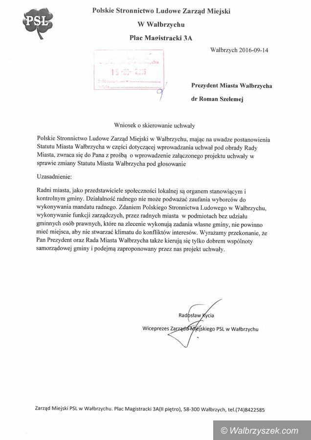 PSL domaga się zmiany statutu miasta