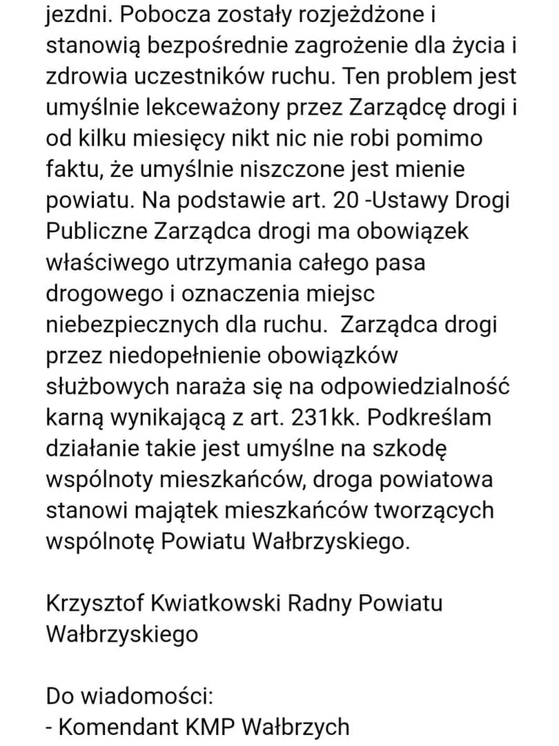 Radny apeluje do Zarządu Powiatu