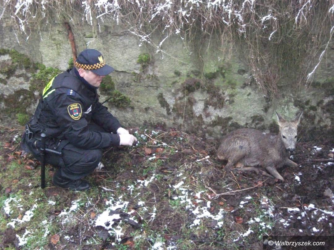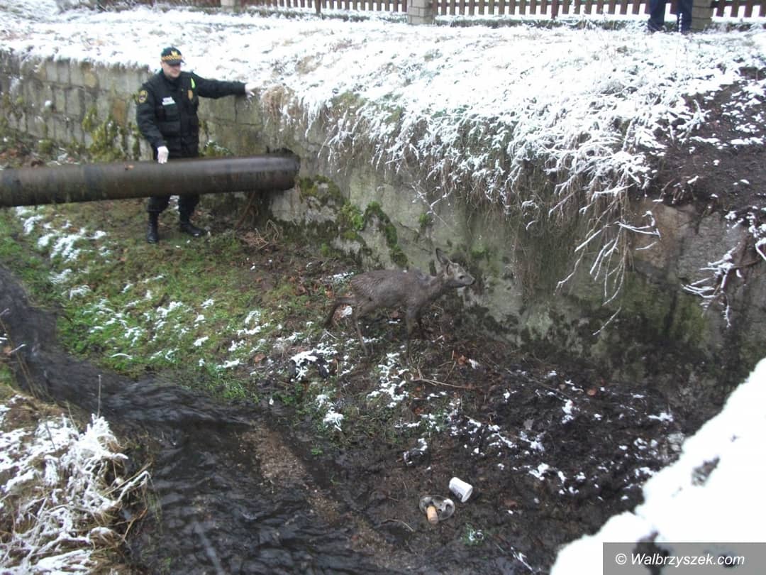 Sarna w korycie rzeki
