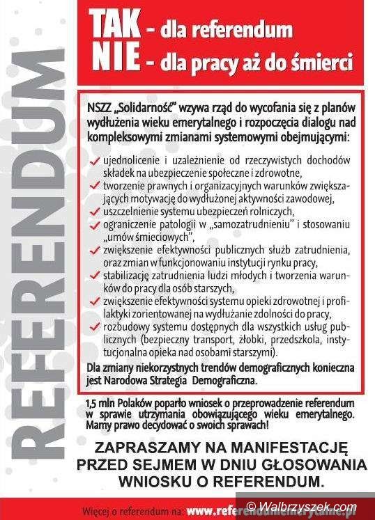 „Solidarność” za referendum w sprawie emerytur