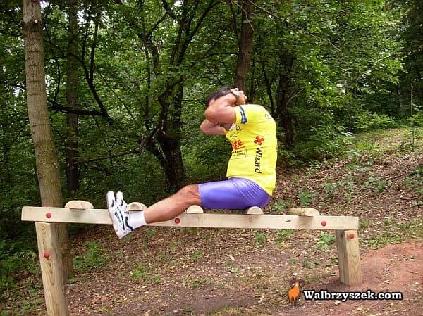 Sportowcy trenują na ścieżce zdrowia