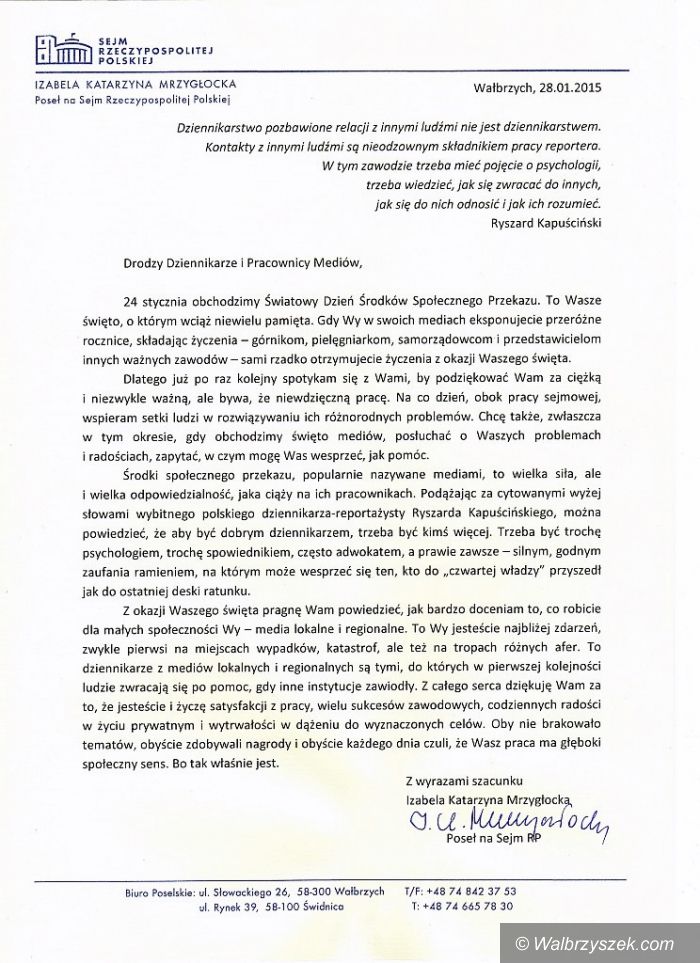 Spotkanie Poseł Izabeli Katarzyny Mrzygłockiej z przedstawicielami mediów