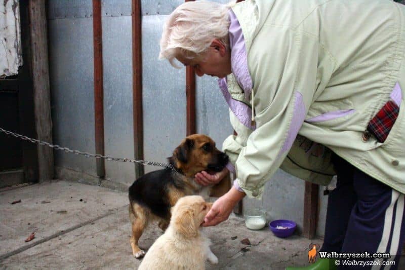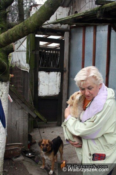 Zofia Kutek z zaprzyjaźnionymi już psiakami