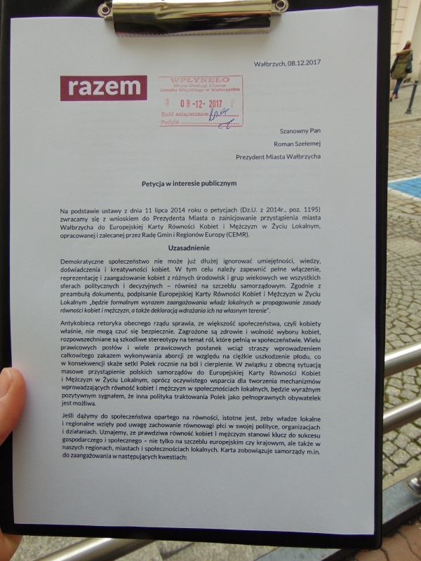 Wałbrzych miastem równości? Partia Razem składa petycję