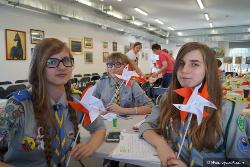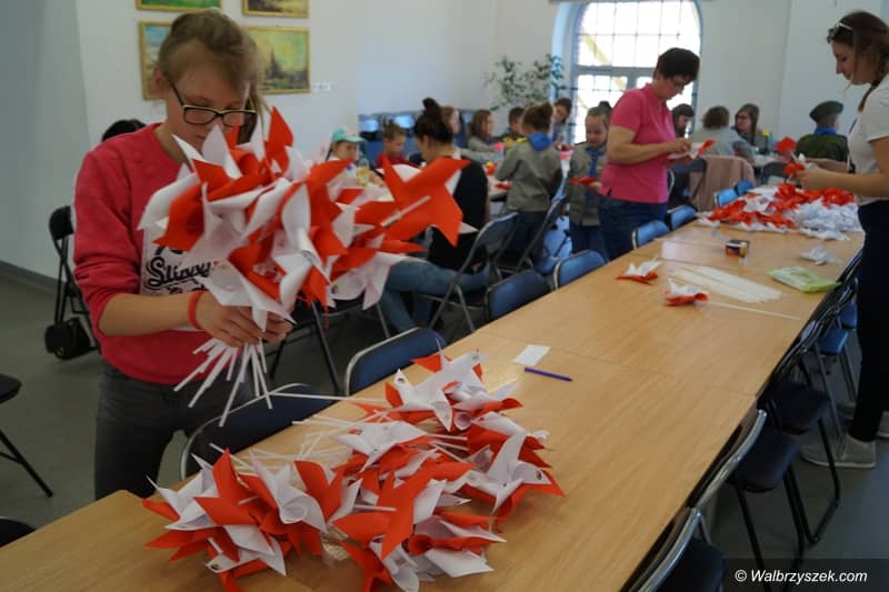 Wielka flaga narodowa i biało – czerwone wiatraczki w Boguszowie–Gorcach