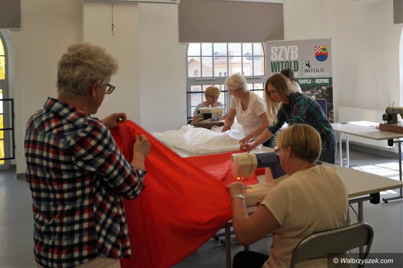 Wielka flaga narodowa i biało – czerwone wiatraczki w Boguszowie–Gorcach