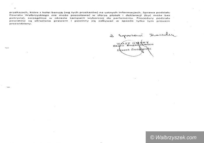 Włodarze gmin powiatu wałbrzyskiego zaniepokojeni perspektywą grodzkości Wałbrzycha