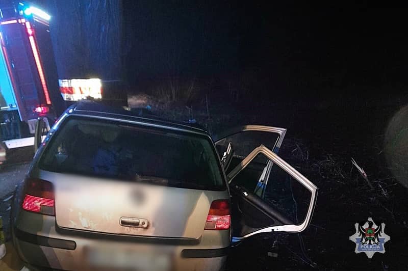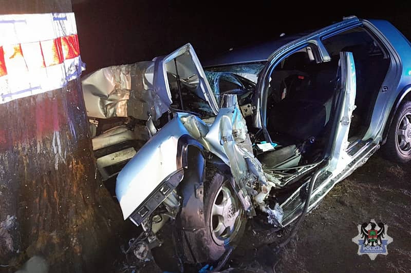 Zagapił się i uderzył w drzewo