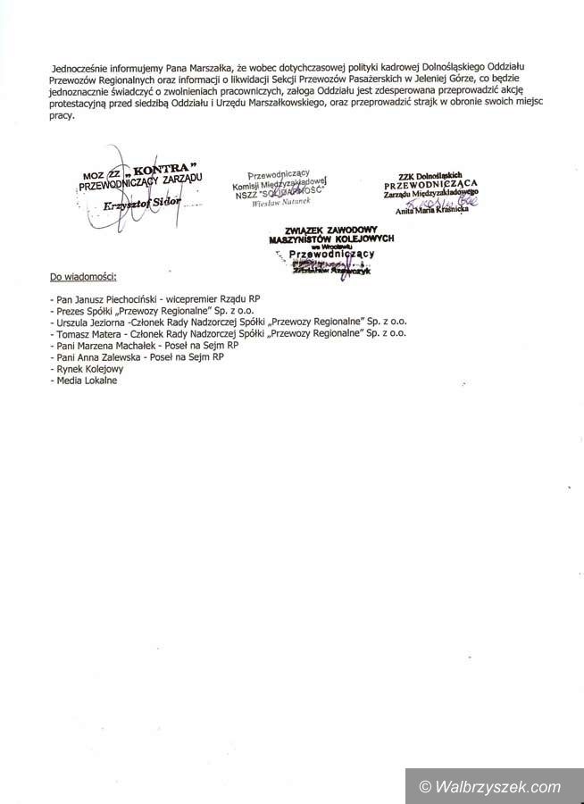 Związki zawodowe reprezentujące kolejarzy interweniują w sprawie zwolnień